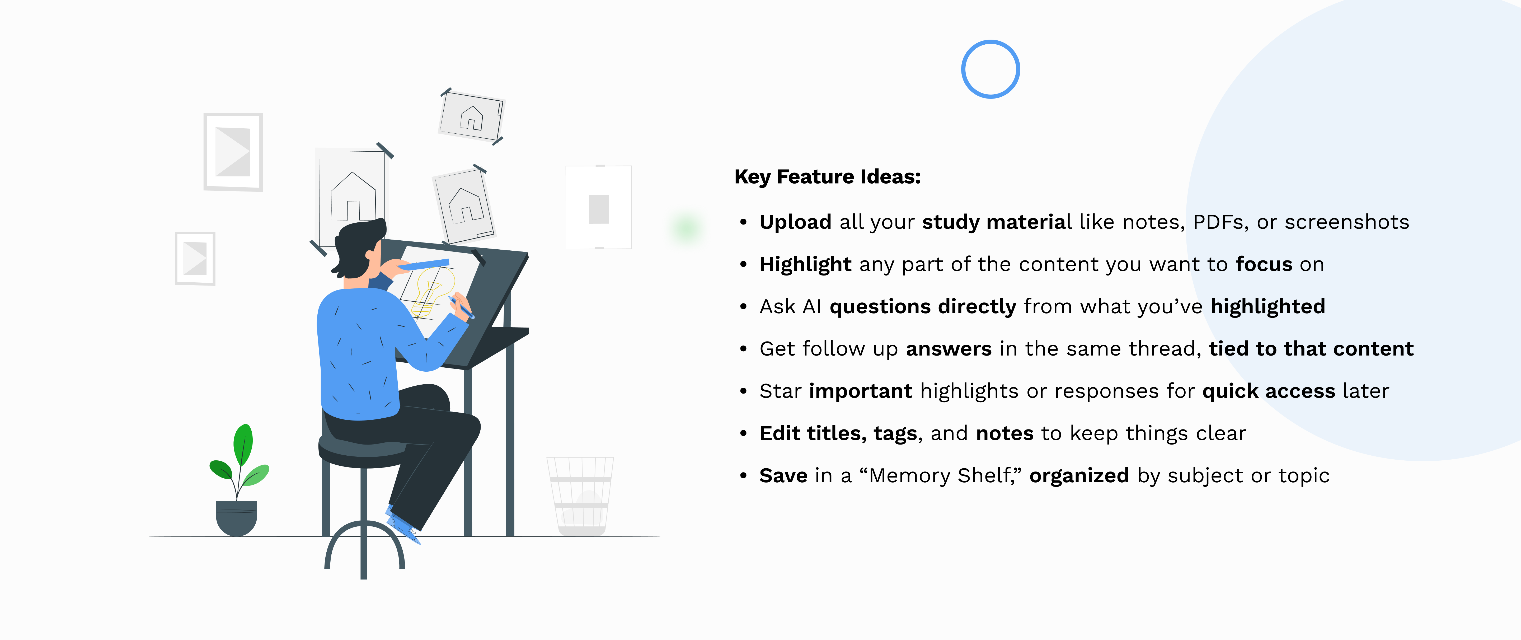 Students can select any part of their notes to edit, highlight, or copy using a quick action bar that appears on selection. They also have the option to start a quick follow up chat directly from the selected content. Conversations stay in the same place, keeping everything connected to the context. Important explanations, formulas, and key concepts can be saved for later. Everything is stored in a personal Memory Shelf for quick revision.