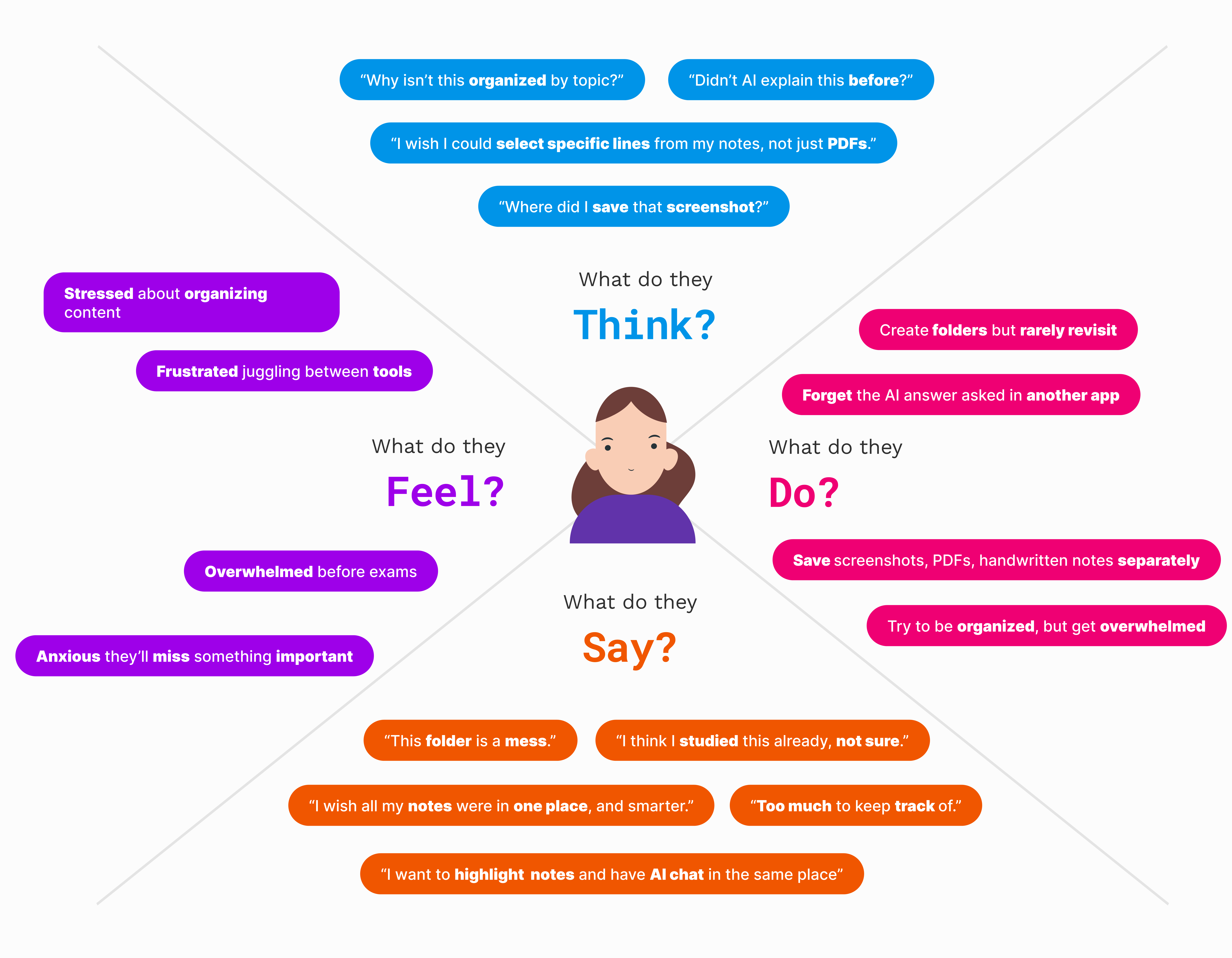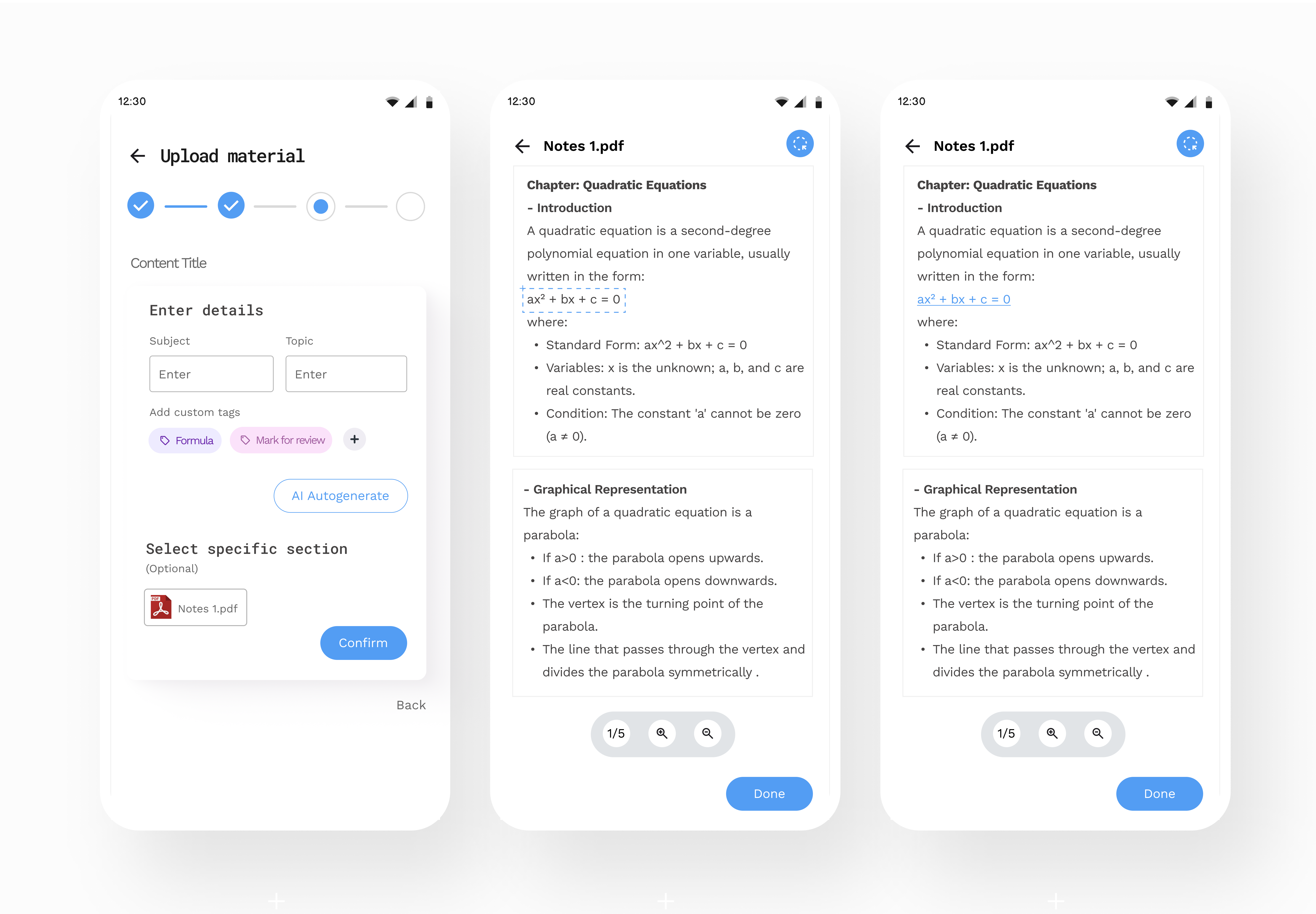 Students can organize their notes by adding or editing subjects, topics, and tags. AI suggests labels to make this faster, while students stay in control. They can highlight any part of their notes to focus on and understand it better. From these highlights, students can ask detailed, context based questions. The questions and answers stay linked to that exact part of the content. Each selected section is saved as a reference link within the note. Students can click the link anytime to jump back to that exact place in the PDF. This keeps everything connected and turns raw notes into organized, interactive study material without switching apps.