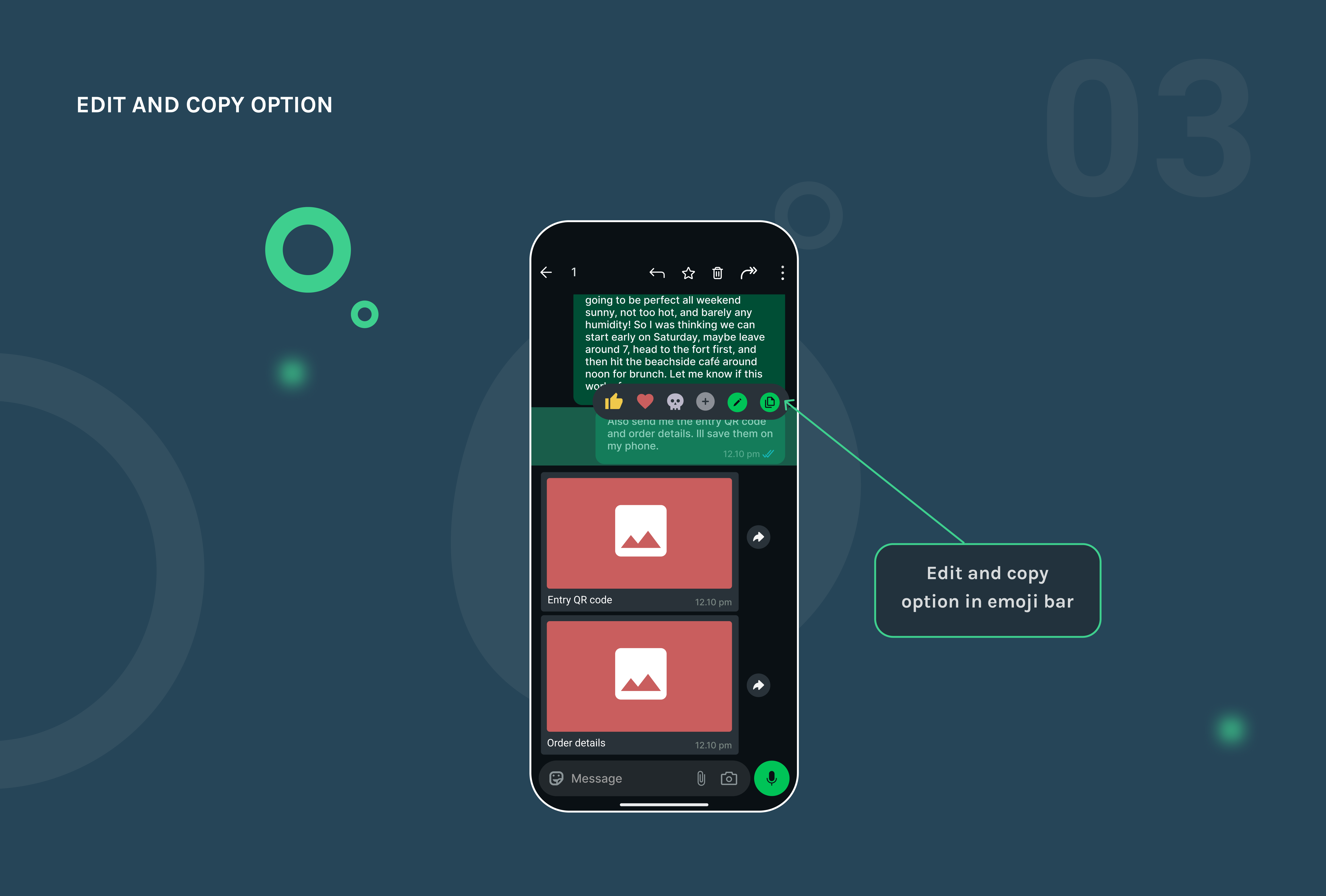 I placed the edit and copy actions directly in the emoji bar for single messages, eliminating the need to dig through menus. These actions are now more visible with distinct icons, making frequent tasks like fixing typos or copying information much faster and more intuitive.